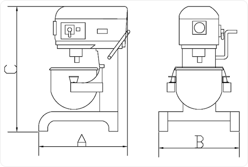 | B20C | 1.1 w | 20 L | 108/195/355 rpm | 6.4 kg-60% water | 4 kg | 555x558x794 | 107kg | |